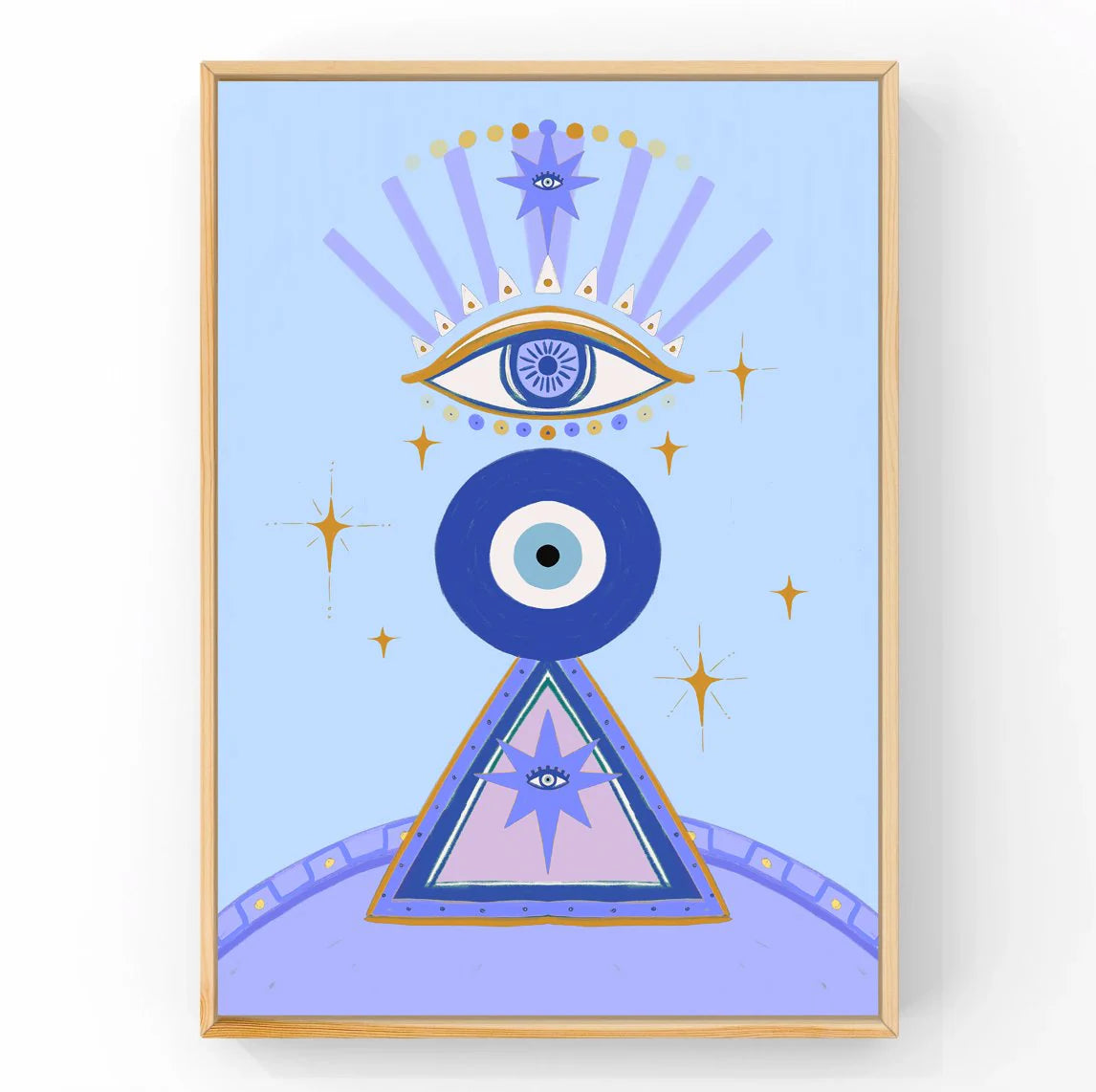 The layered eye motifs, radiant star elements and geometric base create a balanced, thoughtful composition that feels both powerful and peaceful. Soft blue tones make it perfect for nurseries, kids’ bedrooms and playrooms, while the modern design keeps it elevated and timeless.
