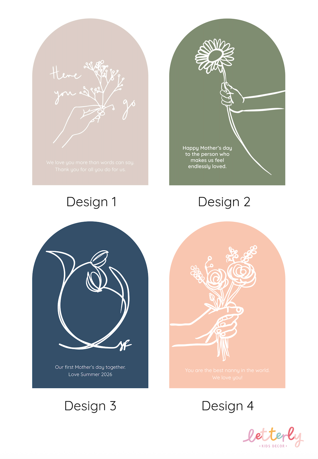 Featuring a delicate floral illustrations by Sally Firino, each arch plaque is a timeless piece made to celebrate the women who mean the most. Mum, Nanny, Grandma, or someone special.