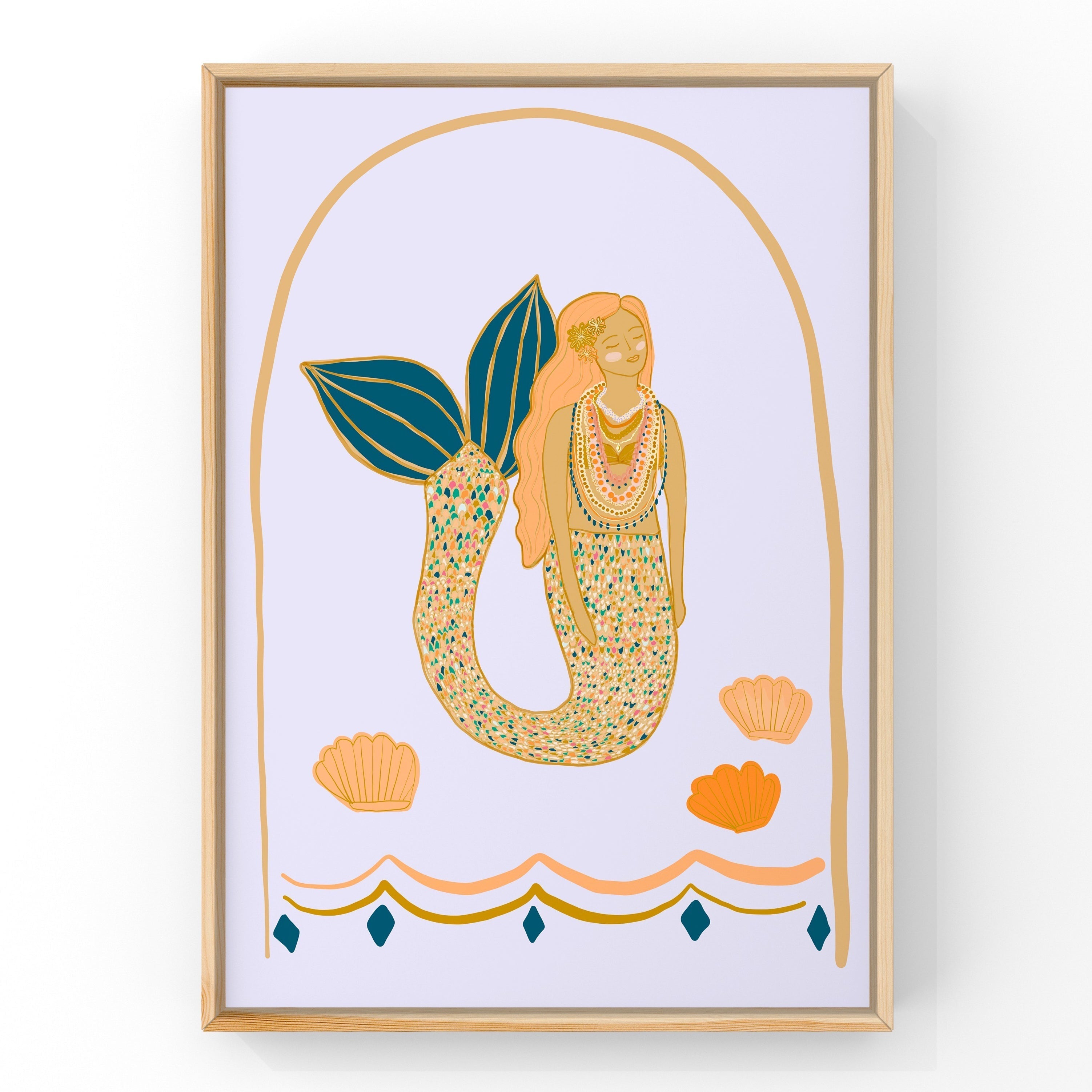 Dark Teal Mermaid (Soft Lilac) by Little Peach & Pip | Art Print