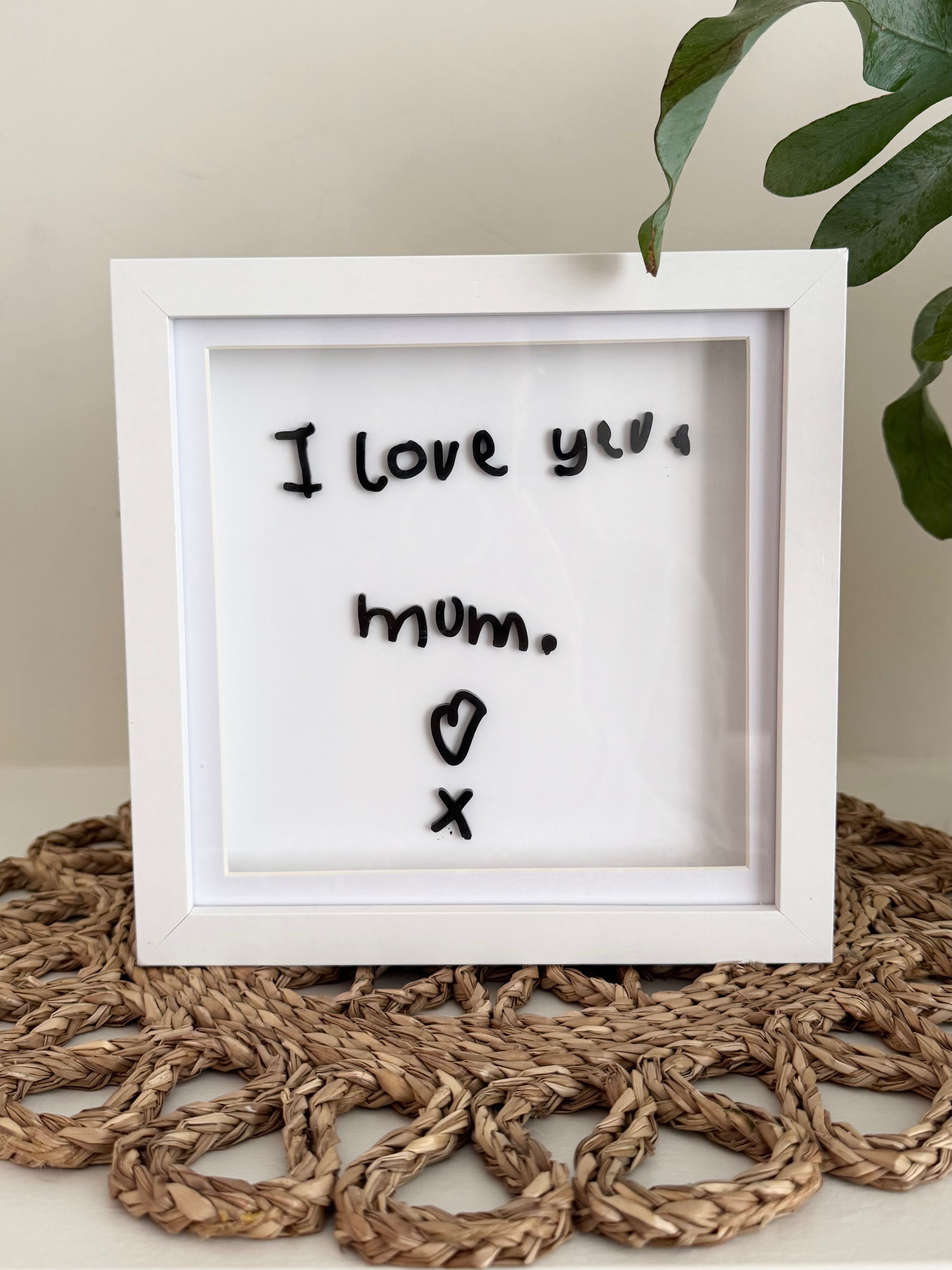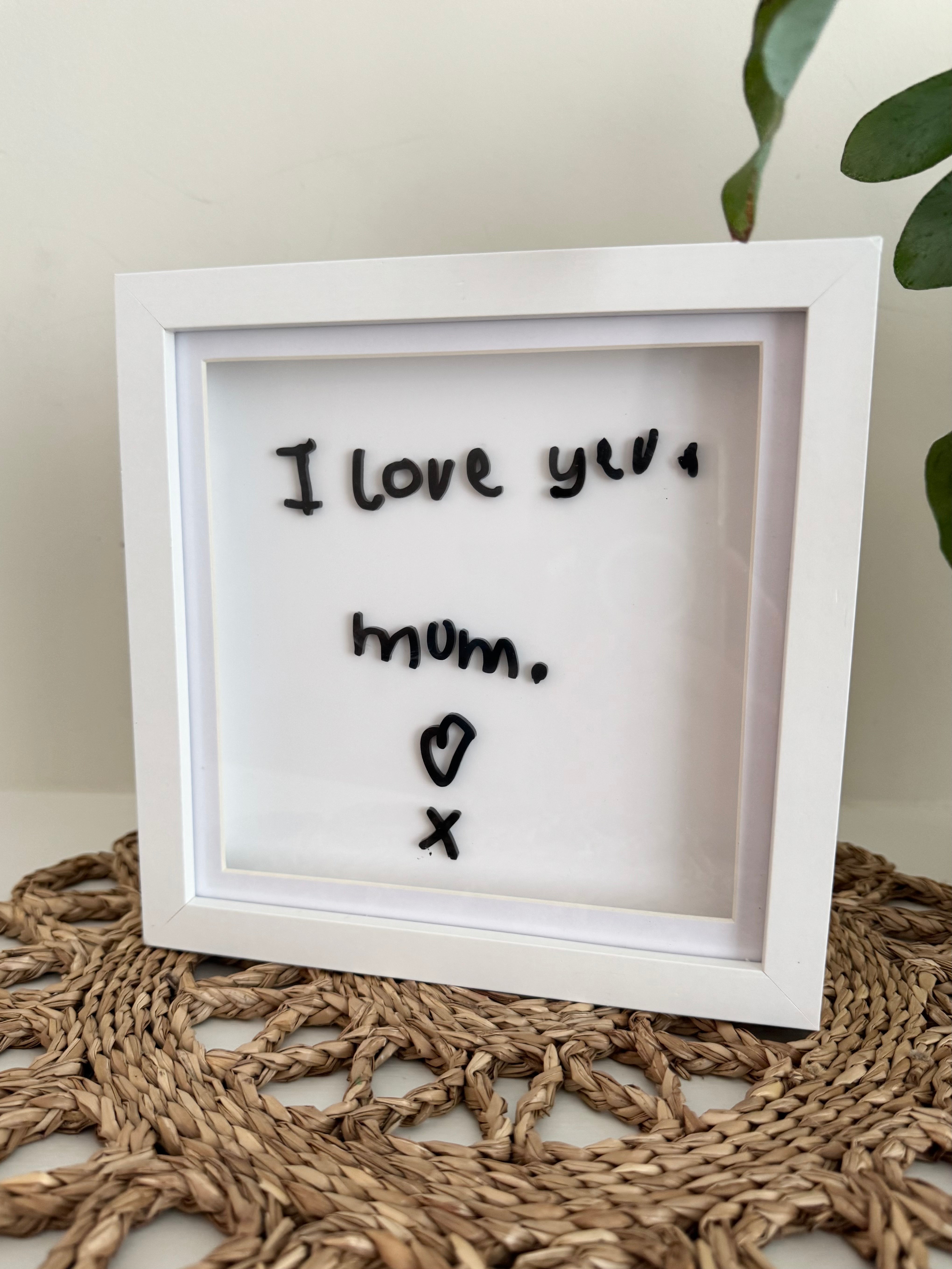 Our custom message box frames are created using your child’s handwritten note - simply email it through and we’ll carefully transform it into a timeless keepsake.