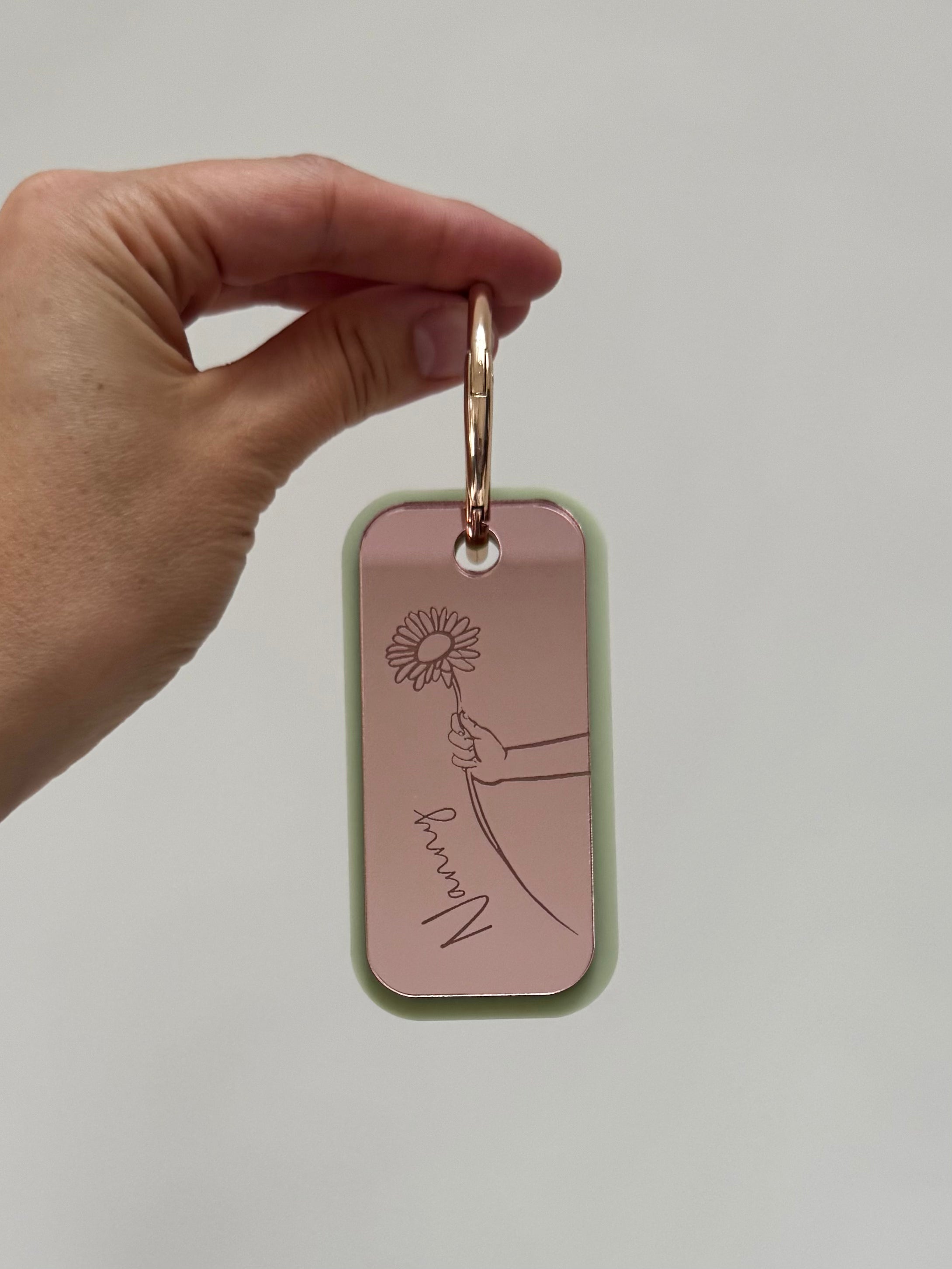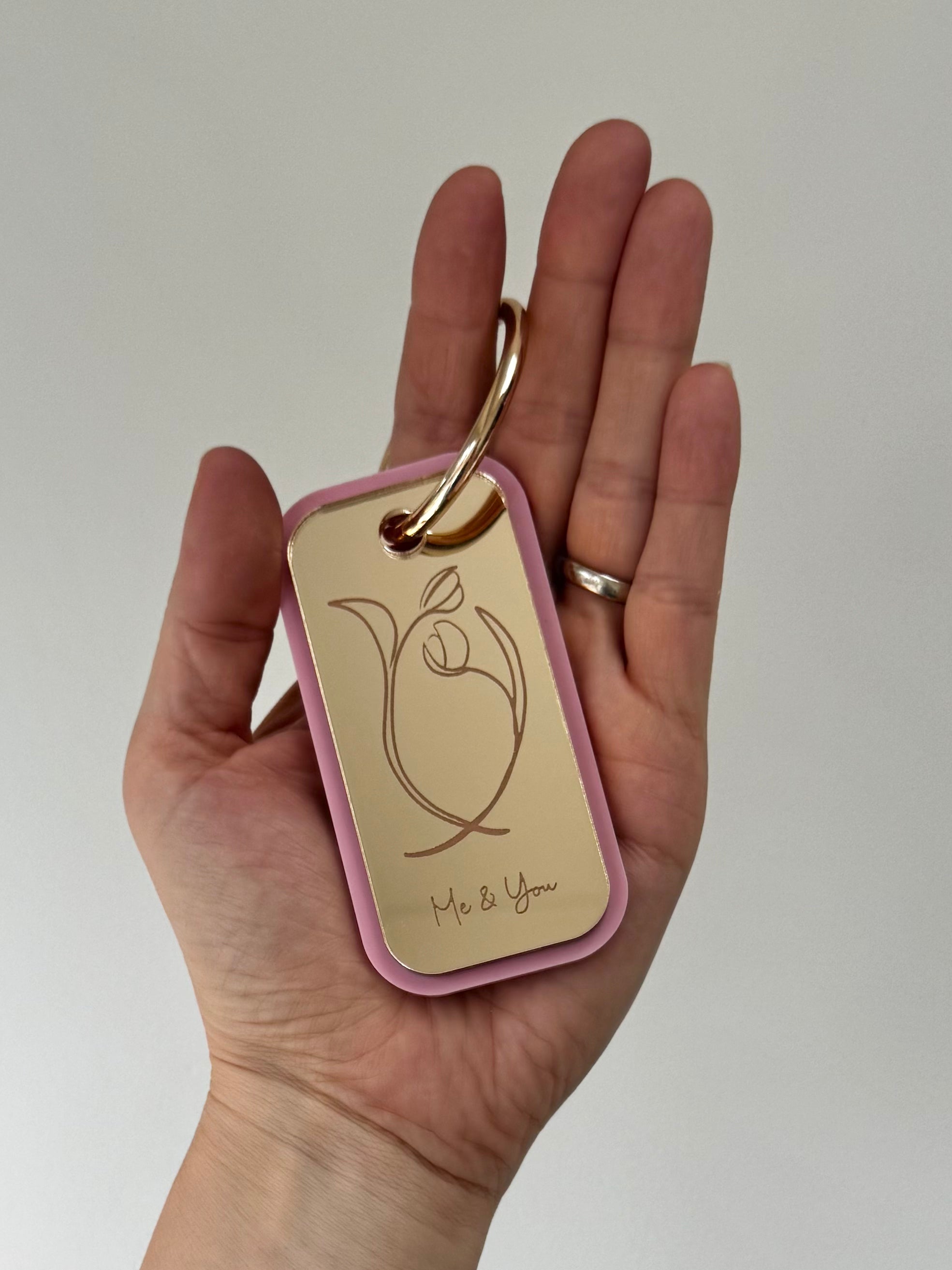 Featuring three exclusive illustrated designs by Sally Firino from Line Simply, each tag is engraved onto mirror acrylic and layered over a coloured acrylic backing for a beautiful, dimensional finish.