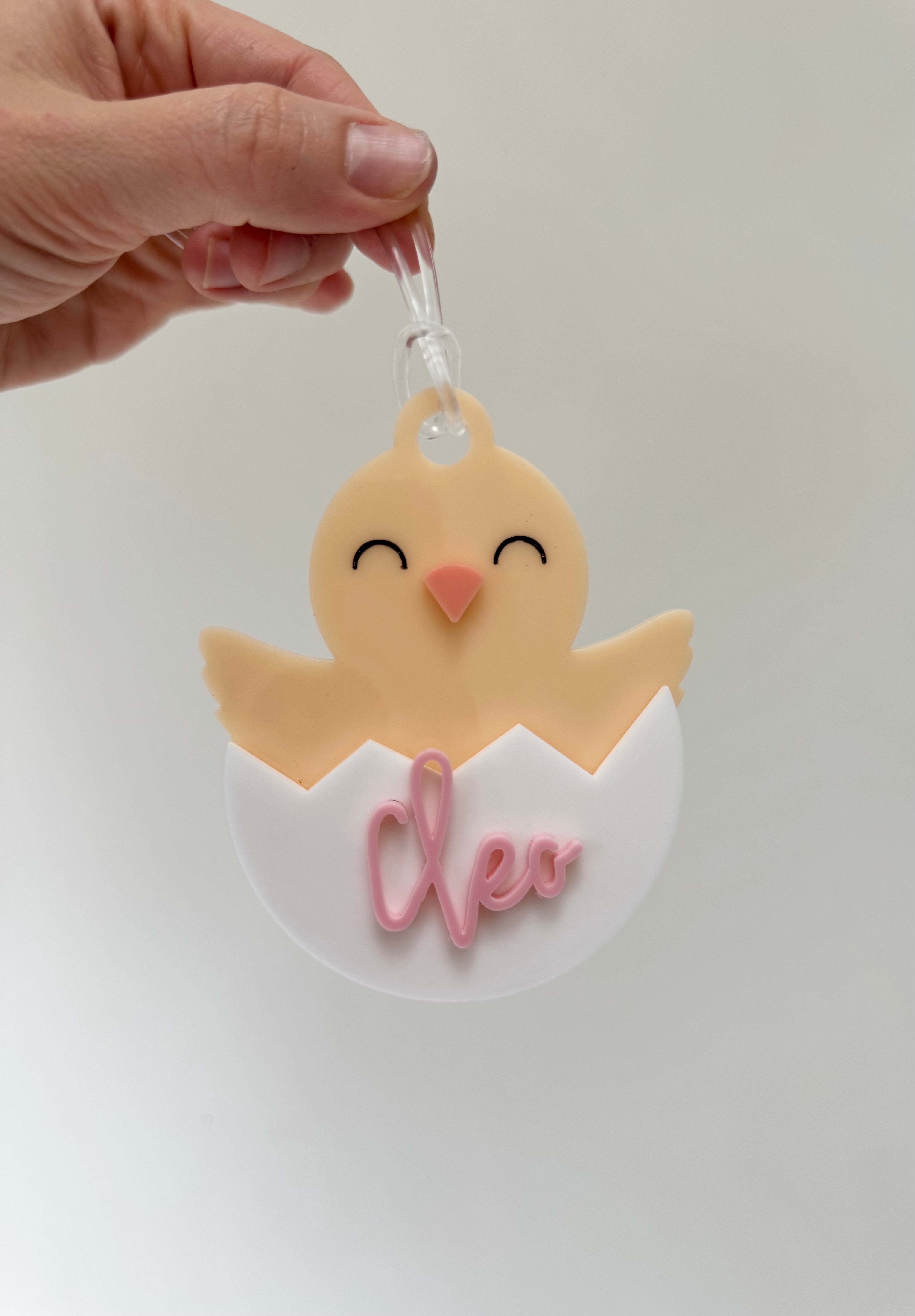 Our sweet little chick has cracked out just in time for Fiver Friday. Add a name, choose your colour, and you’ve got the cutest Easter basket tag, place setting or keepsake sorted.