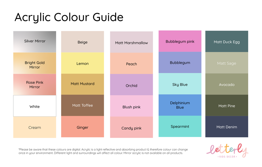 Please keep in mind that not all screens are created equal, so the colour you see on your screen, may vary slightly from the final product.